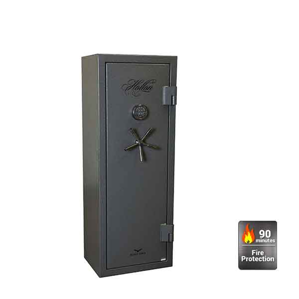 Our Black Hawk Gun Safe now has an increased fire rating of 90 minutes at 1400 degrees. We use multiple layers of fireboard with each layer sealed, caulked, and filled with fire resistant caulking. Additionally our intumescent door seal expands to 8 times its original size when exposed to heat.
